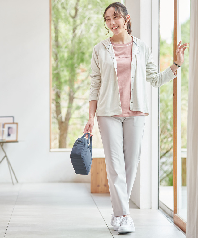 遮熱・吸汗速乾・UVケア・抗ピリング・サスティナブルといった機能性や環境配慮にこだわった素材を使用したパーカーです。優しい色味のベージュとイエローの2色展開で揃えました。