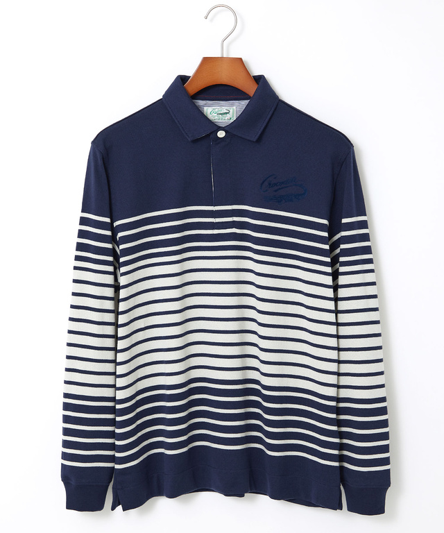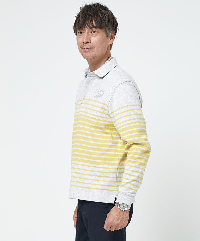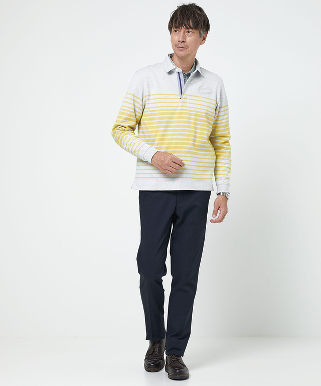 バスクボーダー調のパネルボーダー柄がスッキリと若々しい印象のプルオーバーです。ふっくらと編み立てた肌触りの良い天竺素材で快適な着心地のアイテムです。ブルゾンとのスタイリングに合わせやすいよう、サイズ感にもこだわりました。