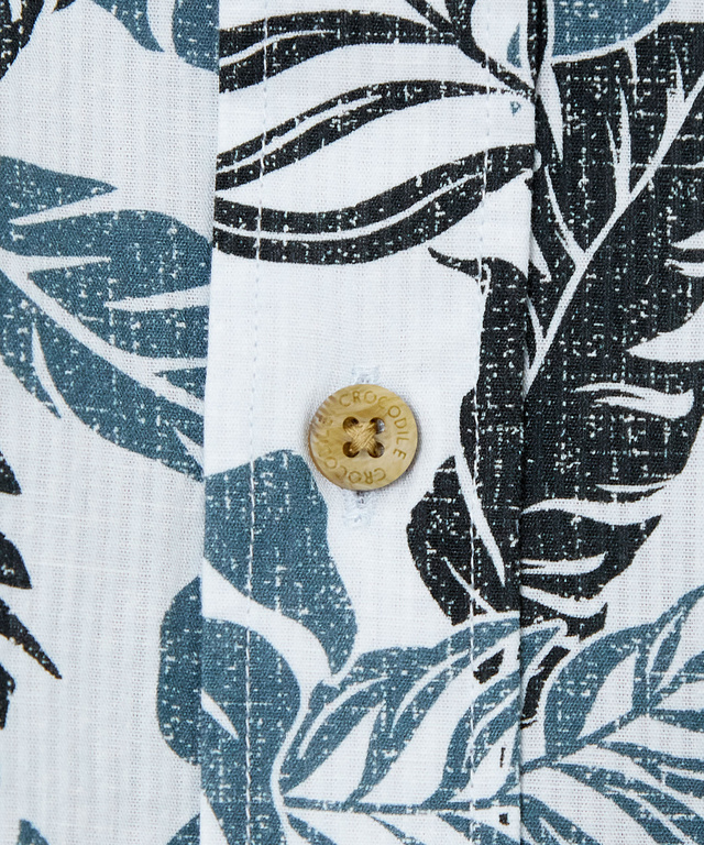 スノーリネンを使用した清涼感のあるシャツです。全面にリーフ柄プリントを施したリゾートな雰囲気漂うデザインで。中にTシャツをインして羽織りとしても着ていただけます。