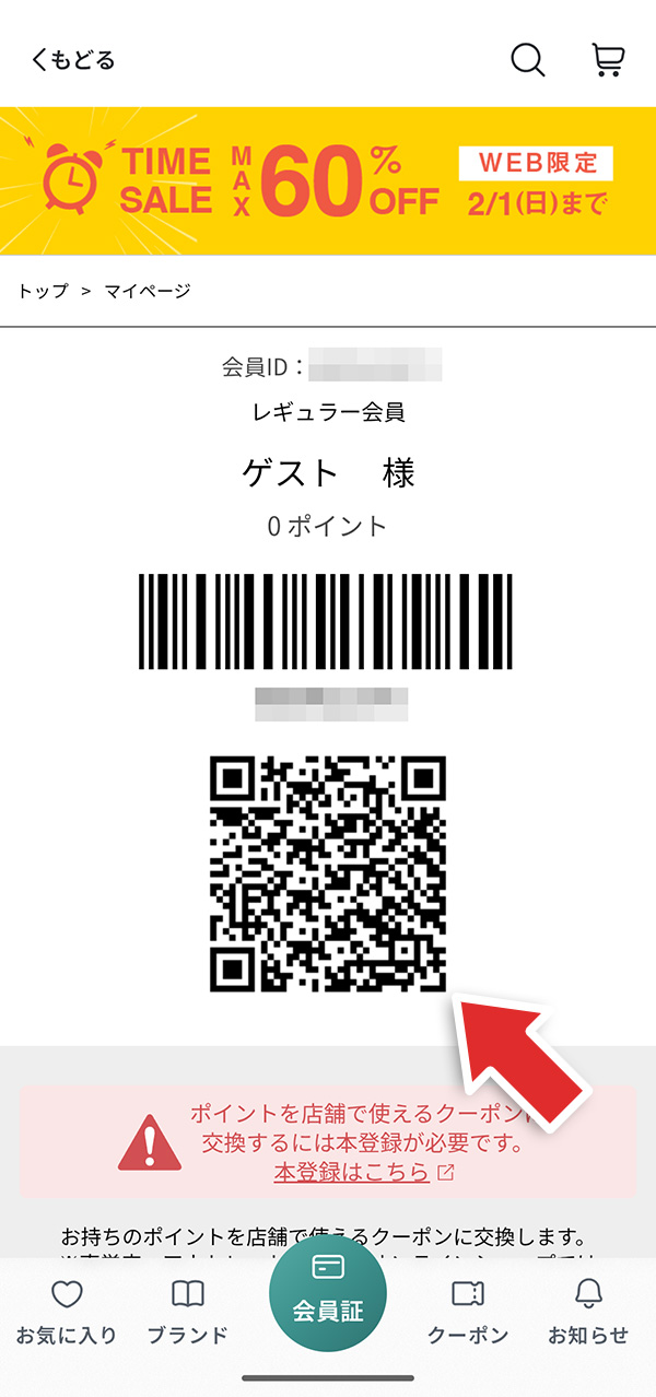 ■ 会員証(QRコード)が表示できない場合の代替案
