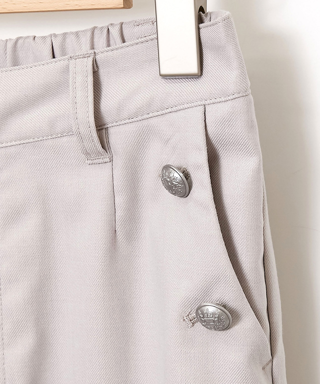 ロングシーズン着用できる程よい肉感のTR素材を使用したパンツ。マリンパンツをイメージしたポケット口の脚付きボタンがデザインアクセントになっています。