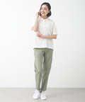 肌にひんやりとする接触冷感素材のスノーコットンを使用したポロシャツです。鹿の子を使用した無地のシンプルなポロシャツですが、襟の編立の端のスカラップ調がアクセントとなっております。女性らしい、デイリー使いしていただけるアイテムです。