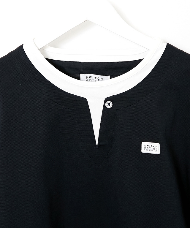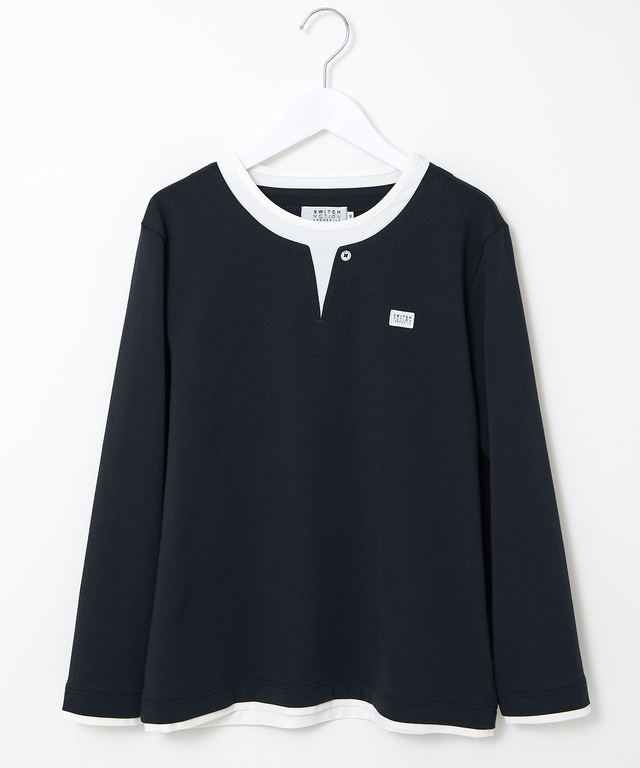 プレーティング天竺素材を使用したカットソー。レイヤード風のデザインで1枚でコーディネートが完成するアイテムです。ベーシックなカラー展開でボトムスを選ばずに着ていただける着丈感です。