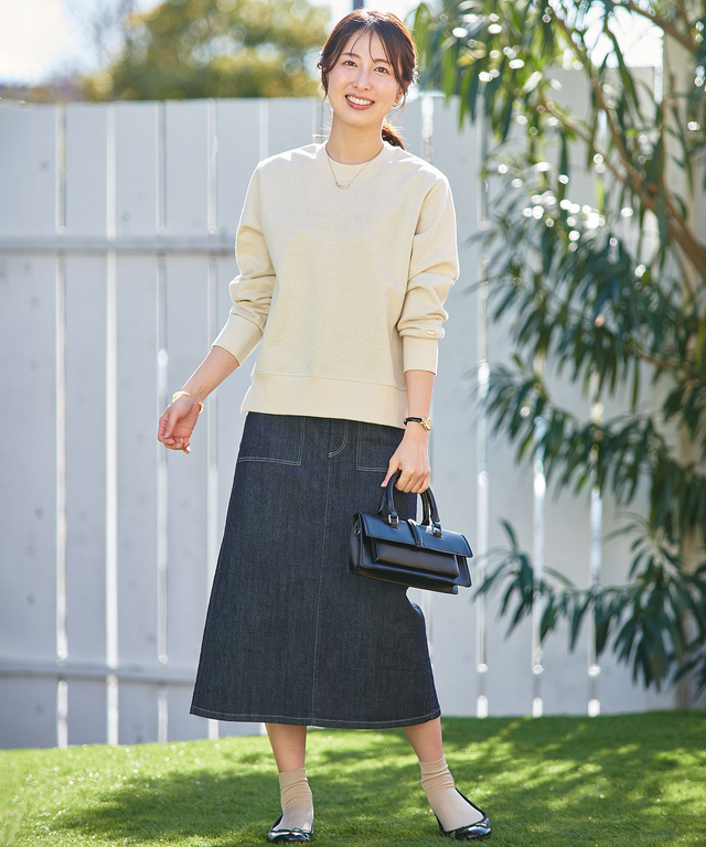 昨年ご好評いただいたデニムスカートが色を変えて今年も登場。ワンウォッシュで綺麗めなのでカジュアルスタイルにも綺麗めスタイルにも着用できるアイテムです。