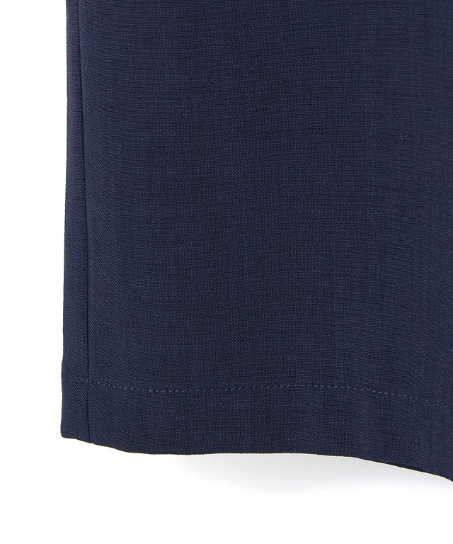 春夏らしいリネンライクなポリエステル100%素材を使用したシワになりにくいパンツ。セミワイドシルエットでゆったり着用できます。