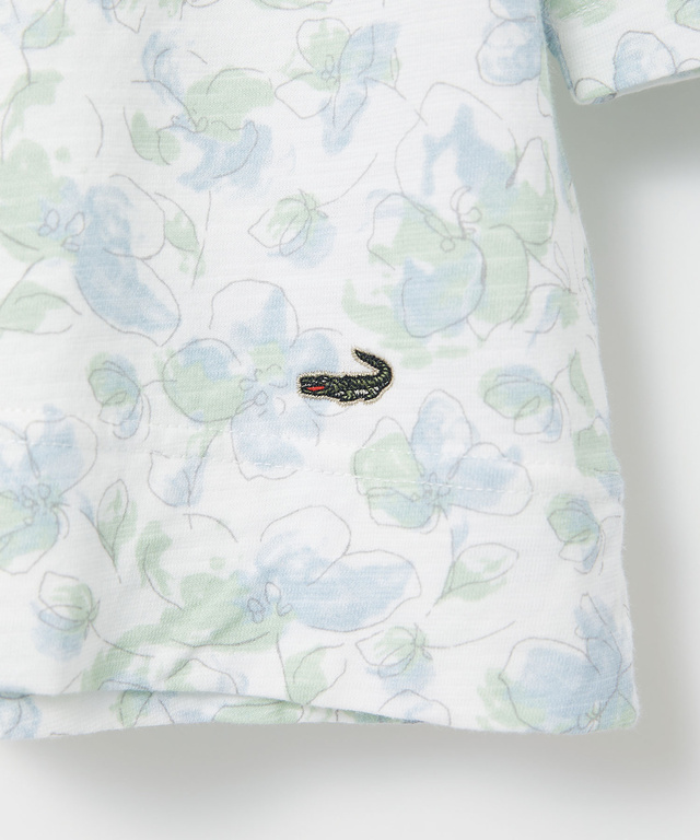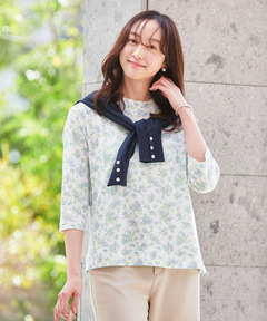 薄手の天竺生地に水彩画の様な花柄をプリントをした七分袖Tシャツ。淡い色合いで派手にならずに春らしさを演出していただける、シャツのインナーとしても使いやすいアイテムです。