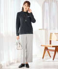 ふっくらと柔らかい接結ジャカード生地を使用したハイネックプルオーバーです。軽やかな着心地ながら程よい保温性があり、優しい色合いの配色で仕上げているのでインナーとしても取り入れやすく、デイリーコーデに活躍します。