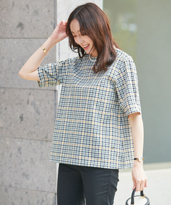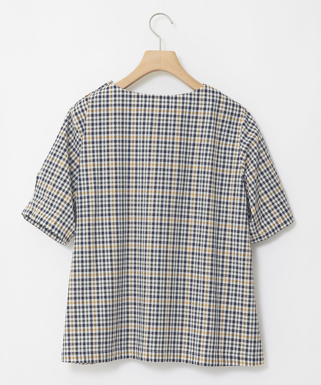 綿サッカー地のクロコダイルタータンは、涼しげで着ていて気持ちも明るくなります。袖口のデザインもかわいい。最近チュニックが多かったので短めブラウスは自信が無かったけど、お店で着てみてお腹周りも目立たないデザインだったので安心して購入できました。