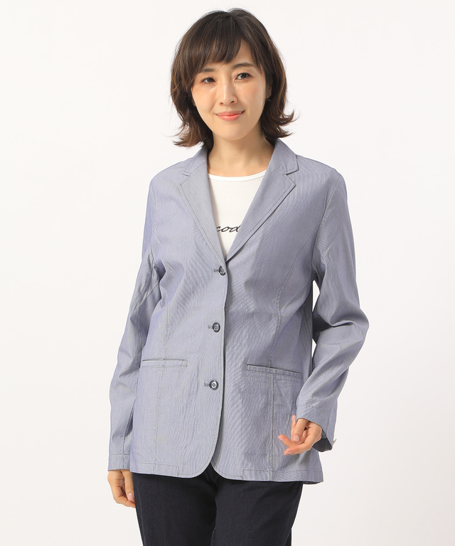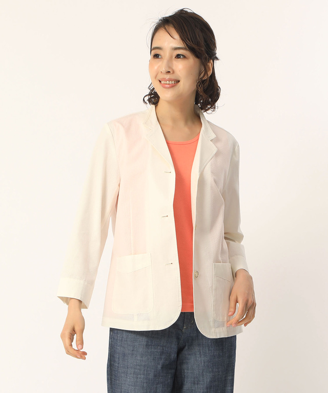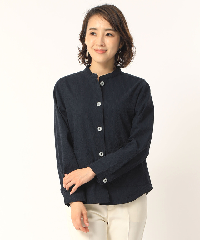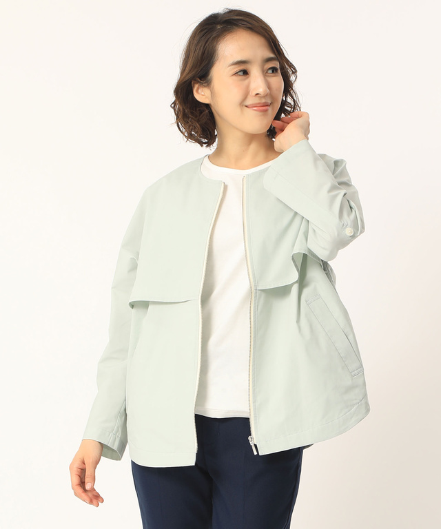 ギャザーデザイン ノーカラー ブルゾン【手洗いOK】