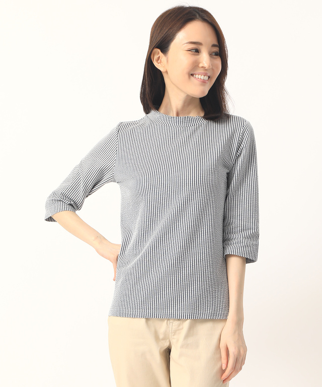 ストライプ バンドカラー ブラウス