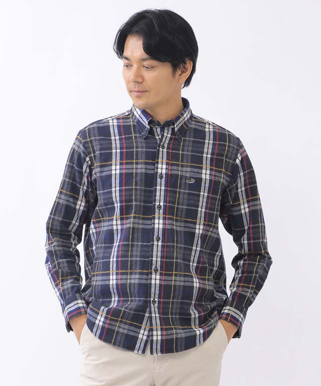 表面にシャギー起毛を施した国産生地のボタンダウンシャツ。ソフトな肌触りで、冬に最適なウォーム感も持ち合わせた逸品です。 ベーシックなタータン柄では無く、クロコダイルオリジナルの柄行きのタータンチェックにこだわりました。 ぬくもりのある配色の4色をご用意。ネイビーのみジャズネップ糸をいれて凹凸感を表現しています。