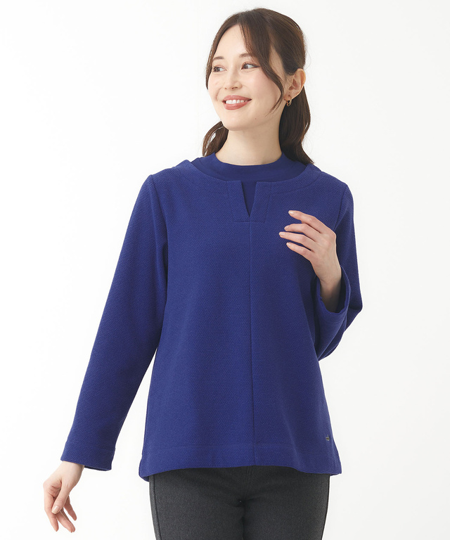 カラーネップが可愛らしい裏起毛素材を使用したプルオーバーです。襟はオフタートル型で、袖は8分丈位のベルスリーブでシャツやハイネックとのレイヤードが楽しめます。チュニックやワンピースとも好相性なアイテムです。