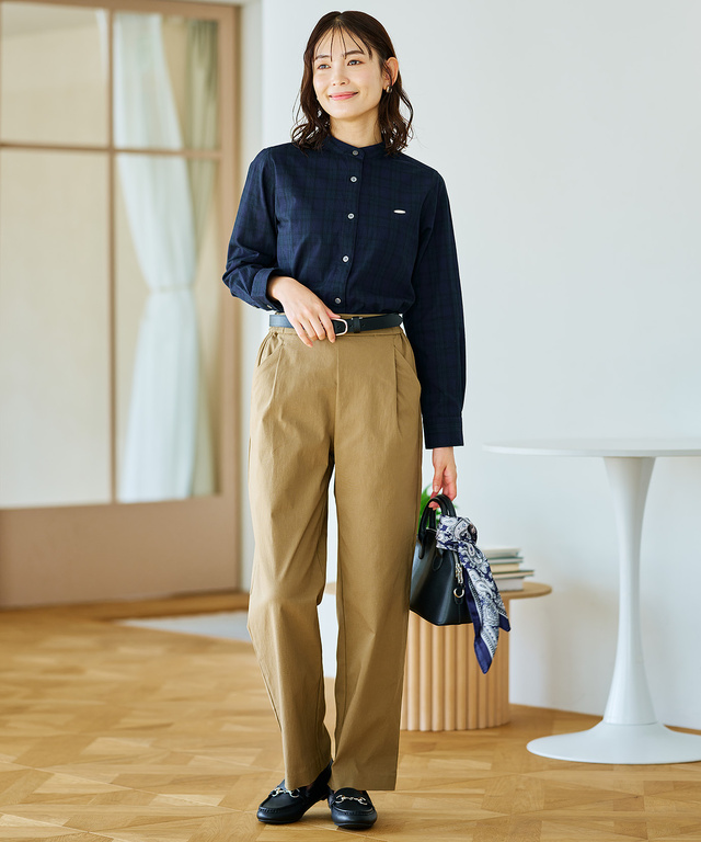 バンドカラー チェック柄 ブラウス 7,700円(税込) グリーン 詳しく見る